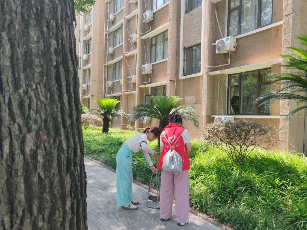 活动现场,同学们佩戴统一志愿徽章。领取清洁工具后,各组迅速分工:同学们手持垃圾袋深入草坪,细致捡拾饮料瓶、包装袋。