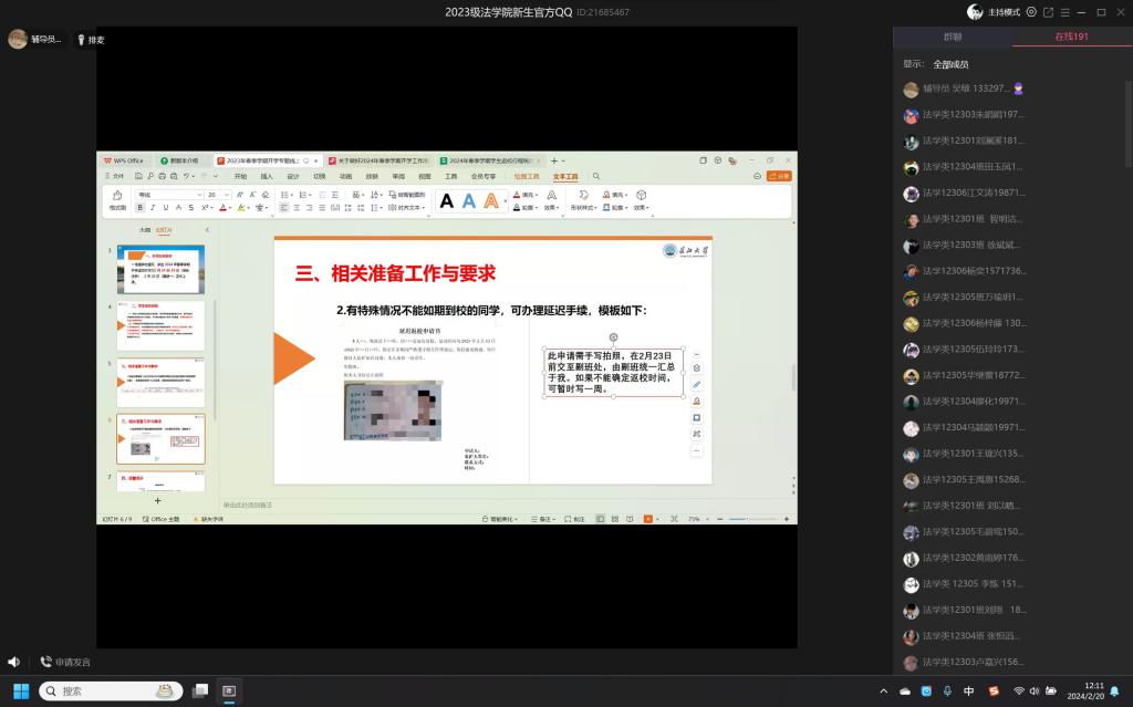 为确保2024年春季学期本科生与研究生开学和返校工作平稳有序开展,球王会网站于2024年2月21日开展了线上安全教育主题班会,班主任参与,全体学生参加。