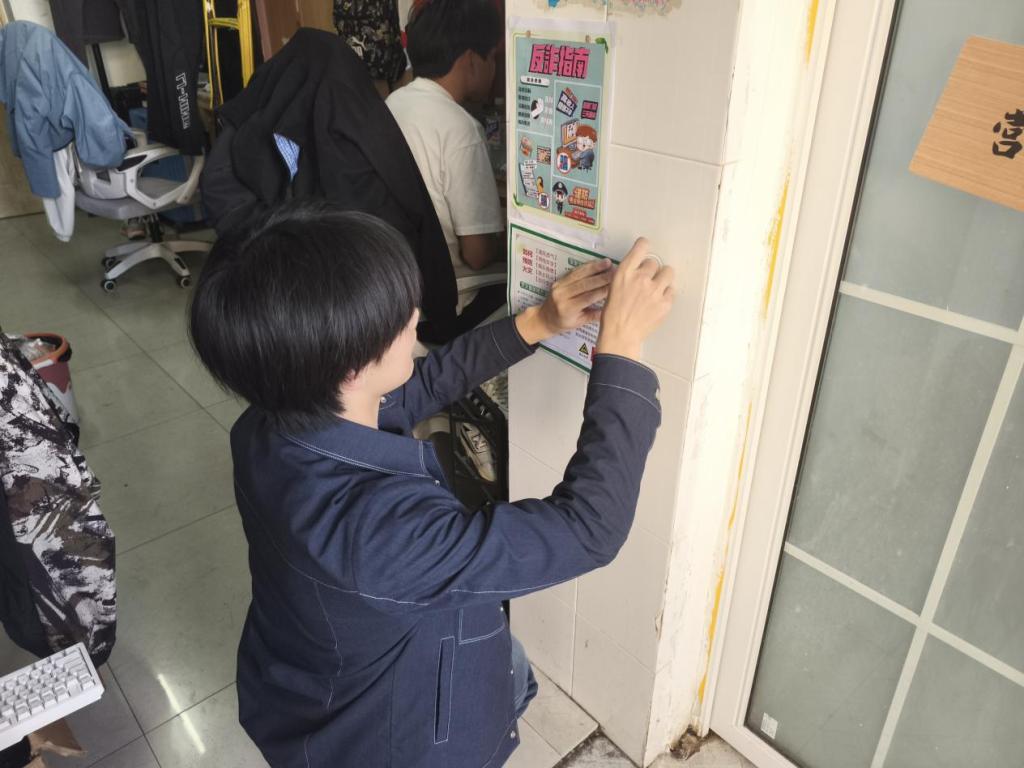 (通讯员 吴搏亚)为切实强化学生安全防范意识,织密校园安全防护网络,11月27日,球王会网站团委学生会安全教育与宿舍建设部面向全院学生寝室,集中开展“安全进寝室”宣传活动。工作人员将涵盖防火、防诈骗等核心内容的安全海报逐一张贴至各寝室,让安全提示融入日常起居,为同学们营造安全、有序、和谐的住宿环境。