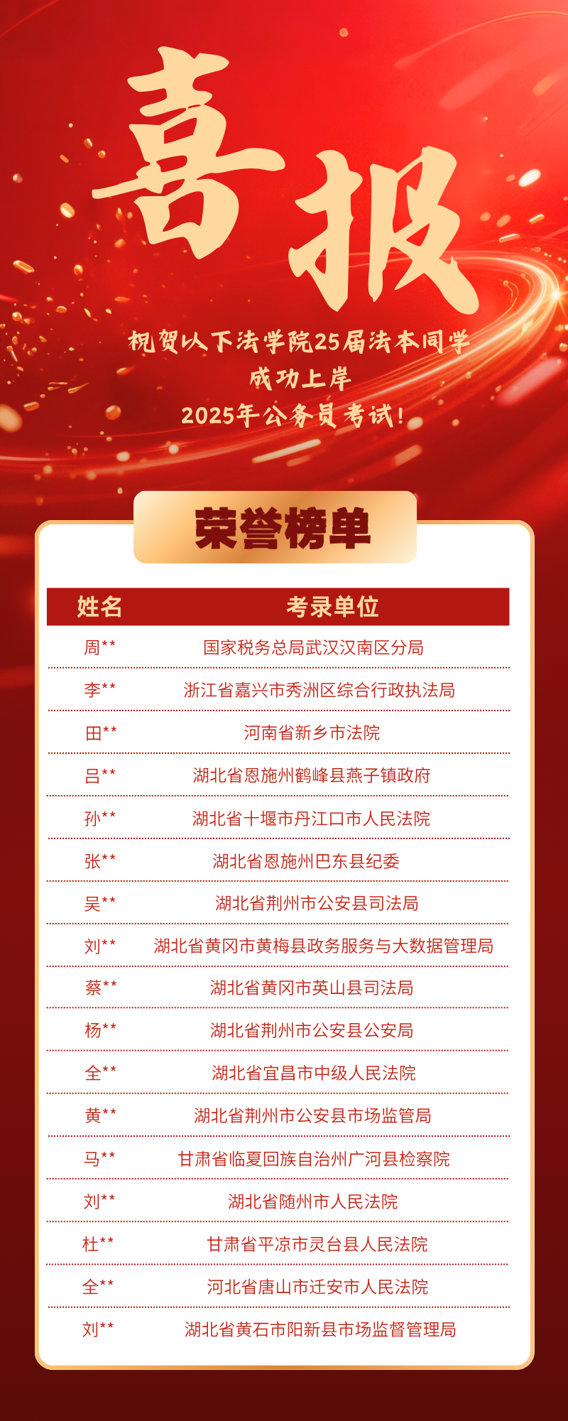 截至目前,球王会网站法学专业213名本科生中共有17人顺利通过公务员招录考试和政审,一次性考录率8%,创近年来球王会网站公务员考录率新高。