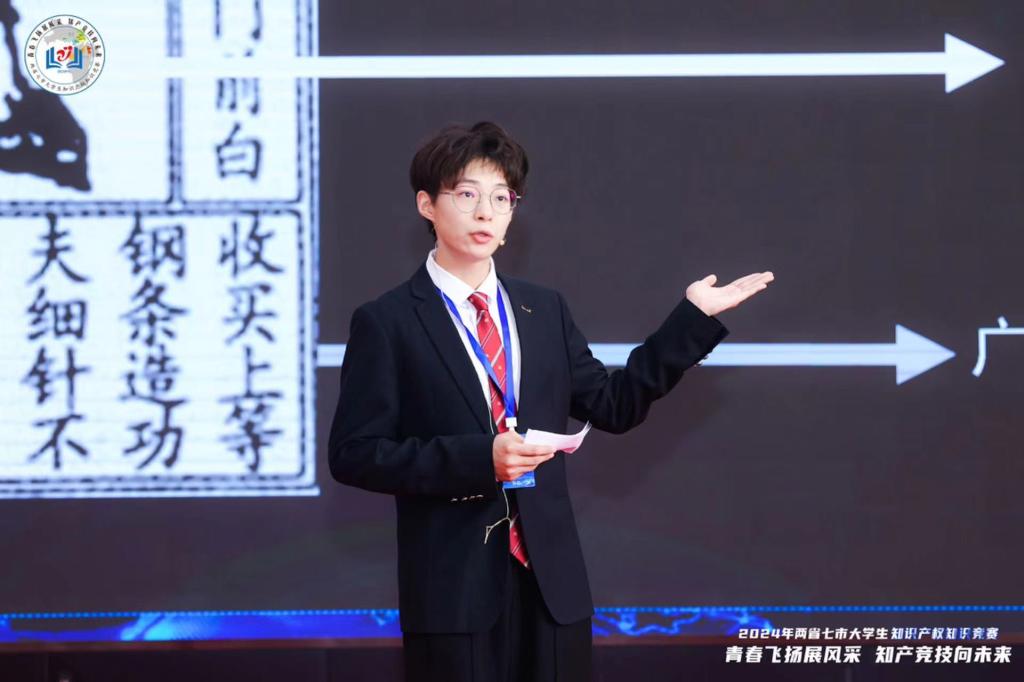 在演讲环节,来自球王会,球王会网站&知识产权学院的秦坤蕾同学结合球王会网站能源、农业领域的科研成果深入阐述知识产权的重要性,提出“我国知识产权走的是一条因青年人而起、由青年人而兴的发展道路,如今又进入了靠青年人而强的新发展阶段”,得到评委老师的一致认可。