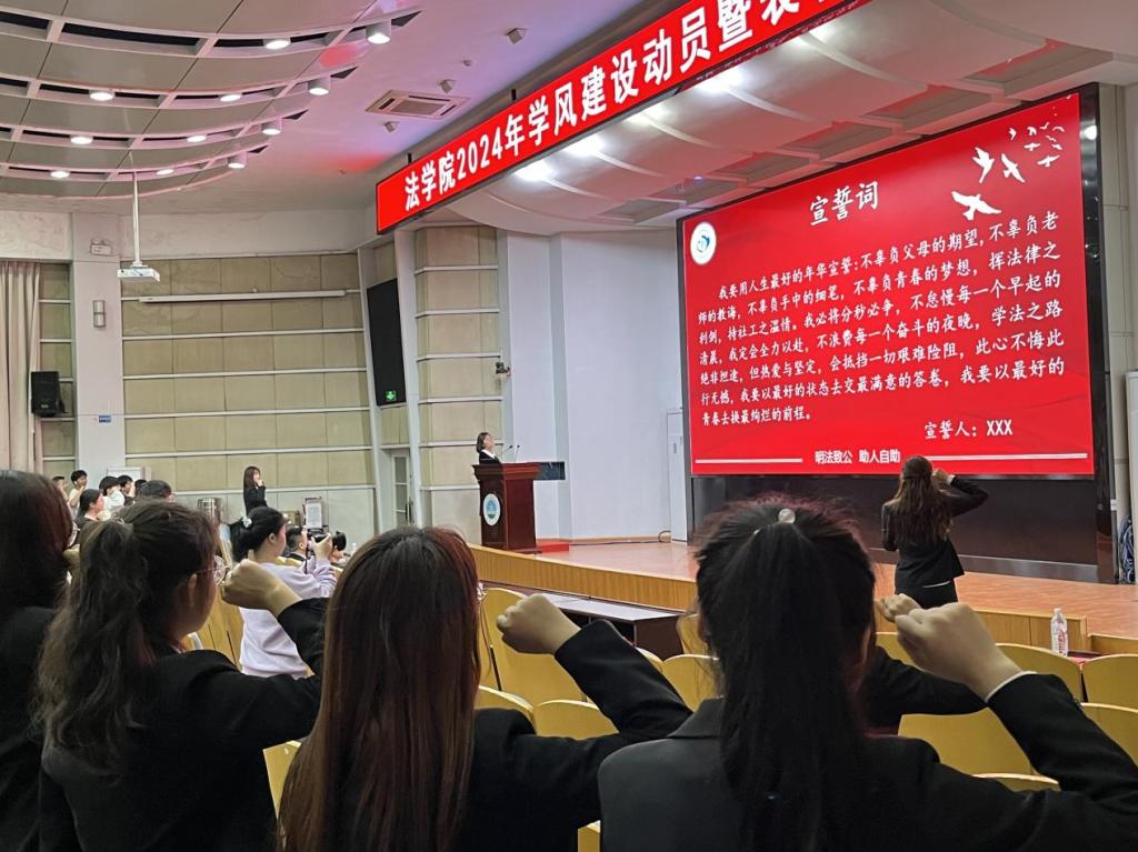最后,由胡曦禾同学带领全体学生进行宣誓。至此,球王会网站2024年学风建设动员暨表彰大会圆满结束。