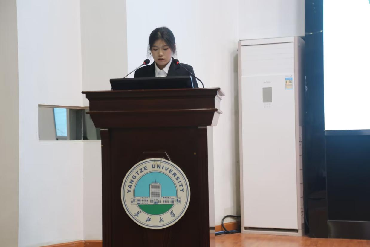 大会第二项,法学类12304班胡秀婷作为学生代表进行英语四级经验分享。她从词汇、听力、阅读、作文四个方面深入浅出地分享了四级备考方法,并建议大家加强真题的练习。