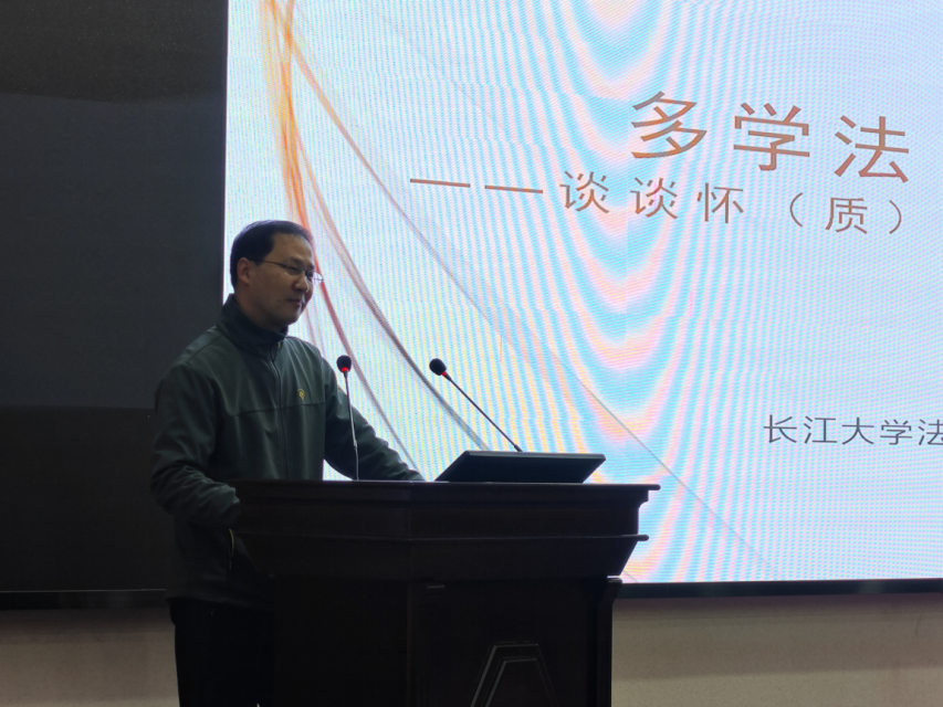 会议伊始,现场全体肃立,奏唱国歌。紧接着,学生代表朗诵《法,在我心中》,展现了法律的严肃和青年一代对法律的敬畏。唐飞在致辞中指出,我校法治文化节全面贯彻落实高校法治教育理念,着力推动学校法治建设,将法治观念与法治信仰植根于每一位长大人的心中。同时,他也表达了对我校法治文化节圆满成功的美好祝愿。最后,程爱军以《多学法、少吃亏》为主题,开展法治宣传讲座,提出了"害人之心不可有,防人之心不可无"的观点,并通过事例论证的方式向在场学生强调了证据保存完整的重要性,深化了同学们的法治观念。会后,学生孔令爱说道:“此次法治宣传讲座更加坚定了我争当法治建设的主力军、普法守法的排头兵、和谐稳定的守护者的决心,为法治中国贡献自己的青春力量。”