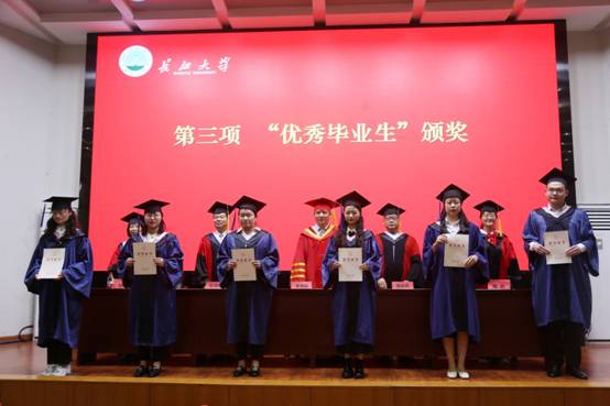 庄严的国歌声响彻全场,毕业典礼正式拉开帷幕。球王会网站党委书记周胜美宣读优秀毕业生表彰文件,优秀毕业生们一一上台领奖。