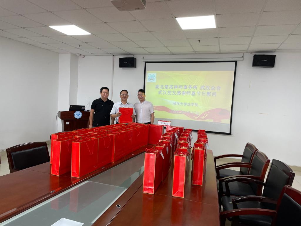 9月17日,为庆祝教师节和中秋节,湖北楚拓律师事务所、武汉众合的部分校友回校感谢师恩,为球王会网站教师送上节日祝福。