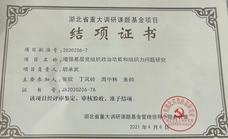 学校是湖北基层治理的重要探索者。学校基层治理团队完成了省委重大调研课题《增强基层党组织政治功能和组织力问题研究》(JX202006-7A)和省政法委交办的调研课题《湖北地方性法规融入司法问题研究》(HBFXH18-304);在中央国家机关媒体《人民政协报》刊发了《如何消除电动自行车火灾威胁?——技术赋能与法治保障要两手抓、两手硬》、《发展共享电动自行车需包容审慎监管》等基层治理建言文章6篇;团队是荆州“自治、法治、德治”三治融合暨“金豆激励”工程的倡议者和评估方。
