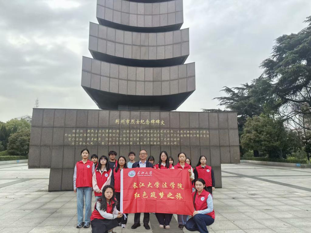 实践活动首站选址荆州市沙市区烈士陵园。园内苍松翠柏环绕丰碑,革命气息庄重肃穆。团队成员怀着崇敬之心,向革命烈士纪念碑敬献花篮、整理缎带,全体肃立默哀,并重温入党入团誓词,铮铮誓言回荡在陵园上空。