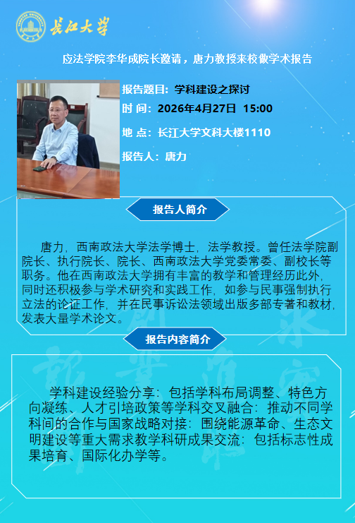长江法治讲坛(2026年第8期)学科建设之探讨